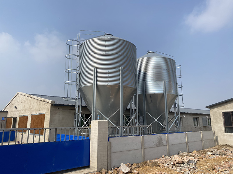 40°料塔倉(cāng)頂為料塔提供了更大的強(qiáng)度和容量,還可防雨水進(jìn)入料倉(cāng)。料塔底部漏斗形狀設(shè)計(jì),為飼料輸送提供條件。